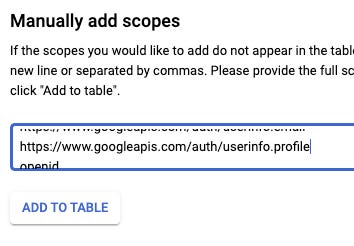 Scroll down to the bottom of the popup, and in the section called Manually add scopes, paste the 3 scopes in