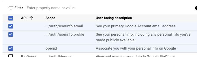 Since we are wanting our Bubble app to act as the coordinator in the login transaction, our app will be asking Google for data about the user[ i.e their email address,profile pic etc], so the middle option is the one for us. This is also confirmed by the docs here which say: