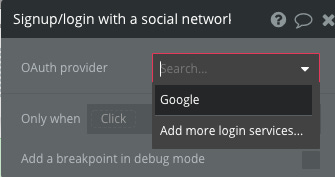 “Deciding if I’ll leave the default Bubble signup method visible, or if I’ll go with Social Logins only.